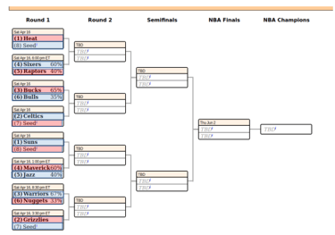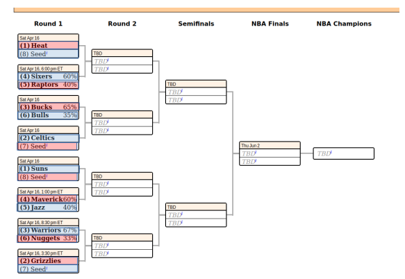 Red Teams: Heat, Bucks, Raptors, Brooklyn : Grizzlies, Mavericks, Nuggets, West #8